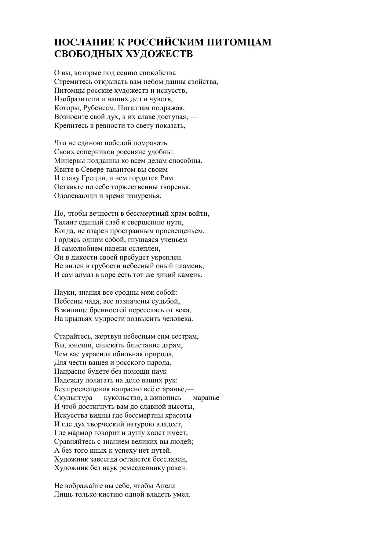 Послание к российским питомцам свободных художеств