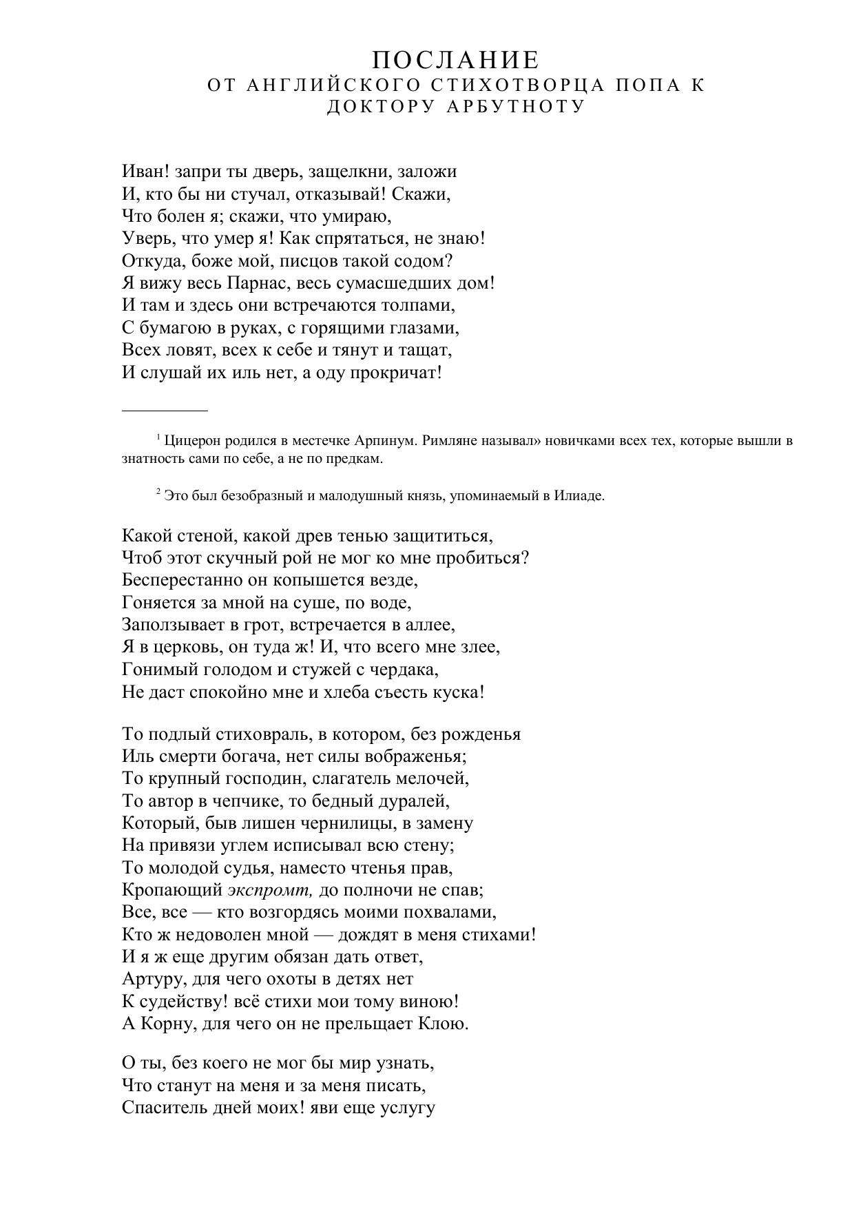 Послание от английского стихотворца Попа к доктору Арбутноту