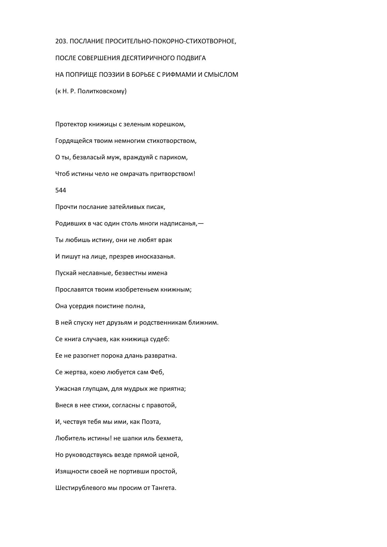 Послание просительно покорно-стихотворное... (К H. P. Политковскому)