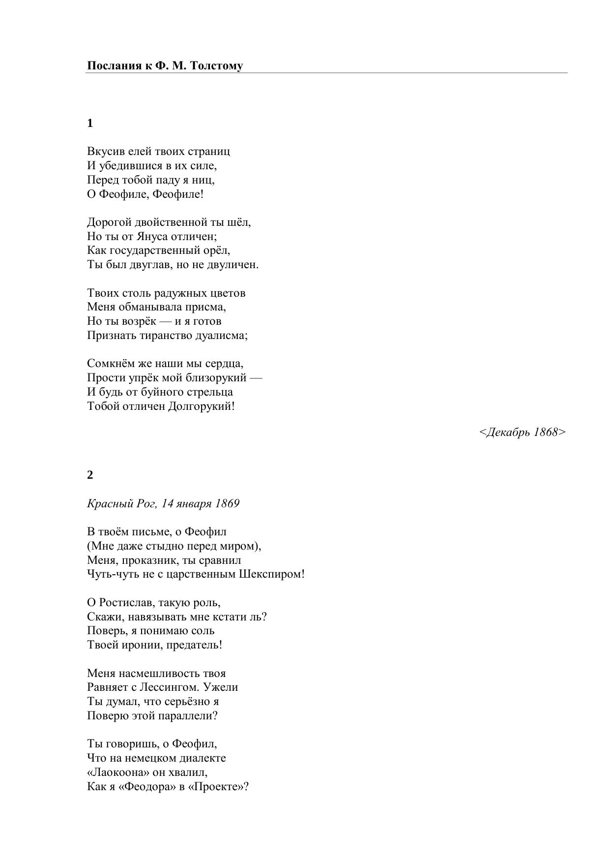 Послания к Ф. М. Толстому
