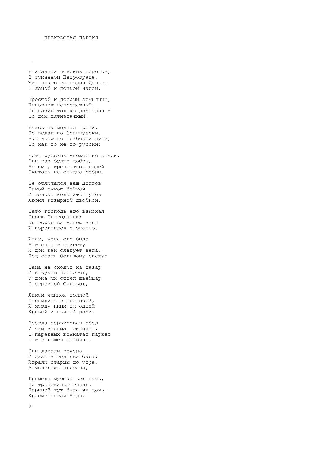 Прекрасная партия (У хладных невских берегов...)