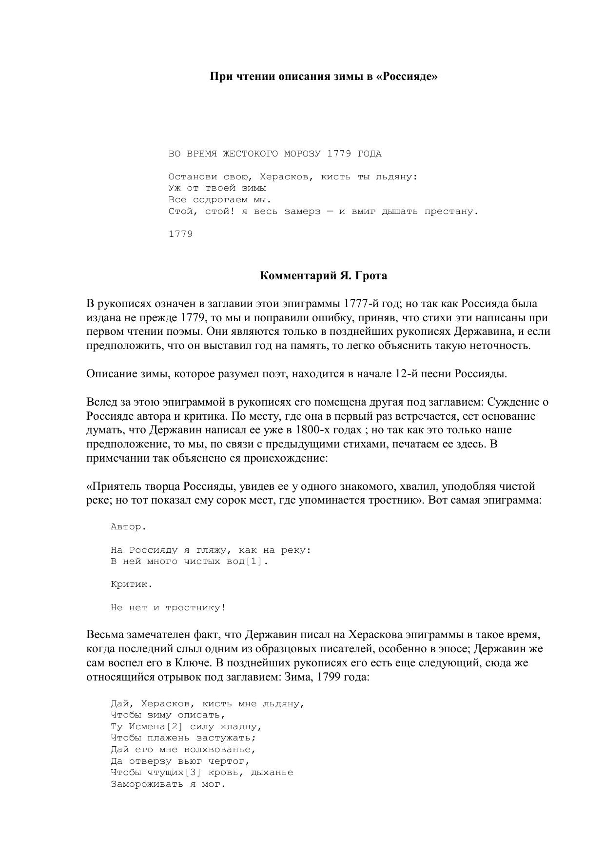 При чтении описания зимы в «Россияде»
