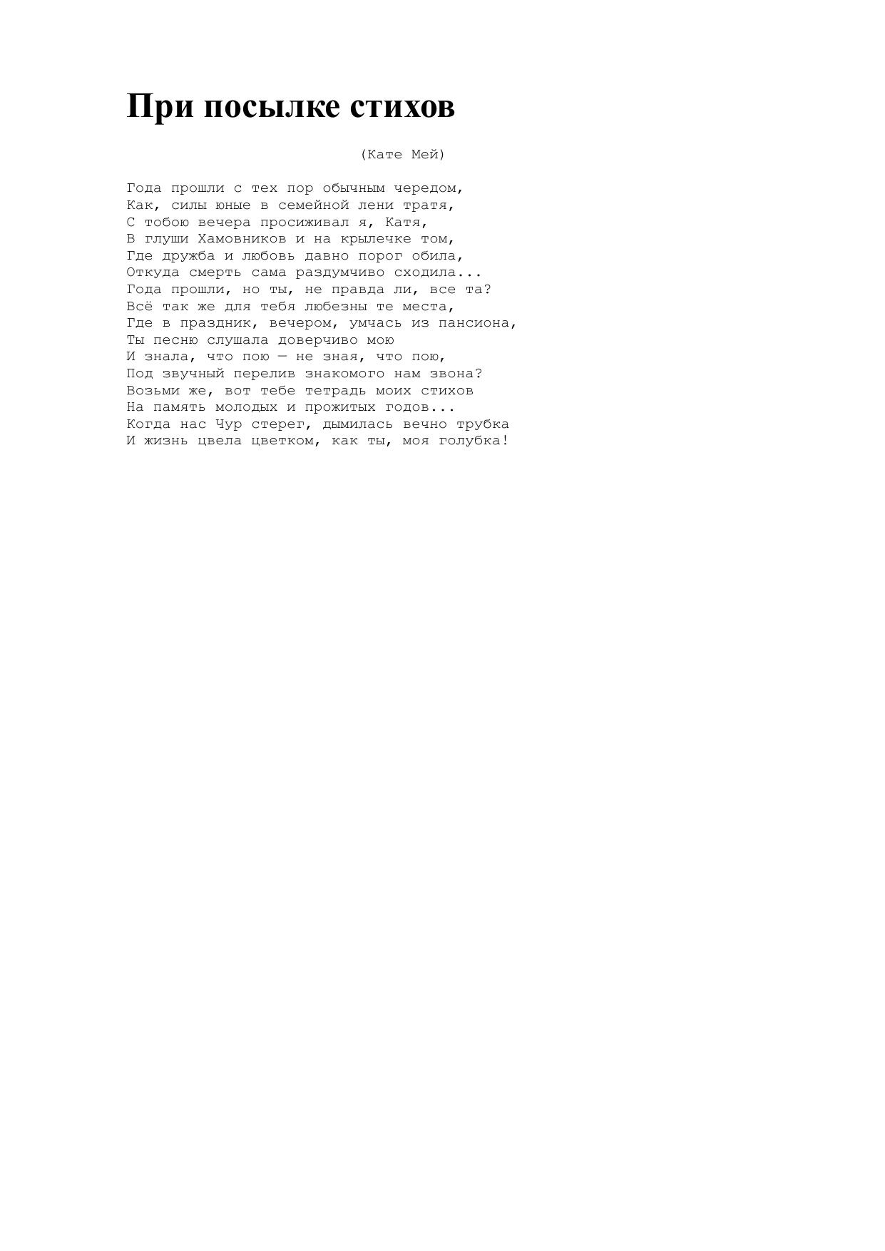 При посылке стихов
