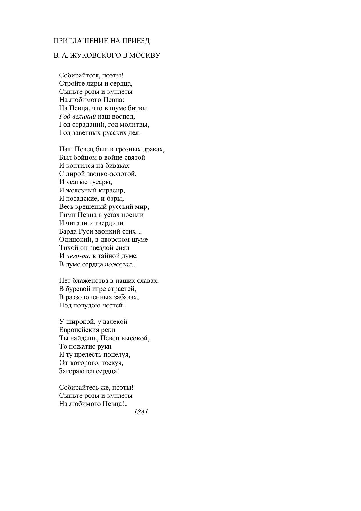 Приглашение на приезд В.А. Жуковского в Москву