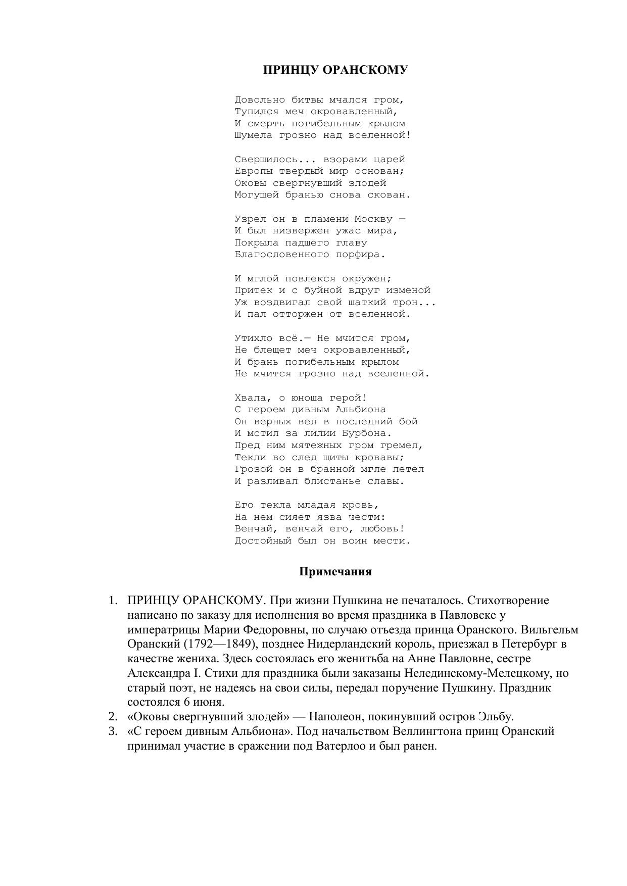 Принцу Оранскому ("Довольно битвы мчался гром...")