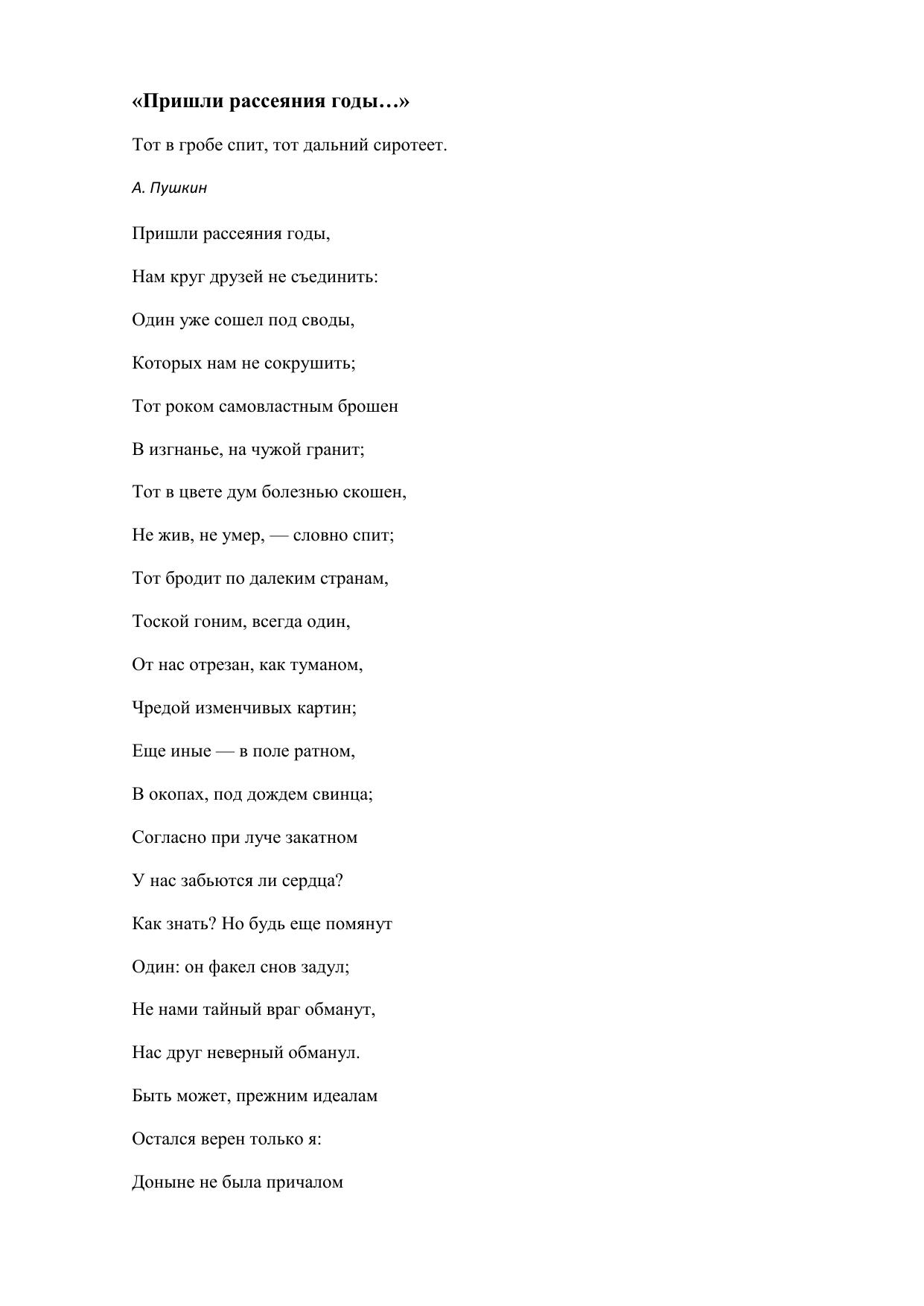 Пришли рассеяния годы…