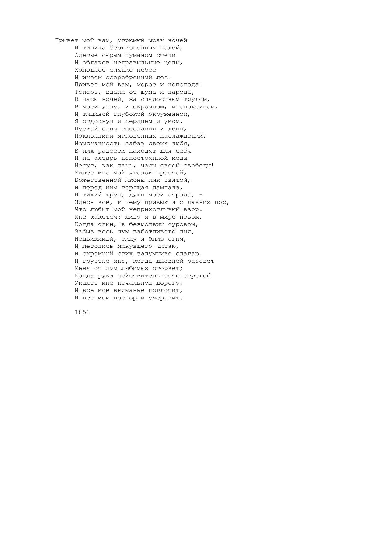 Привет мой вам, угрюмый мрак ночей...
