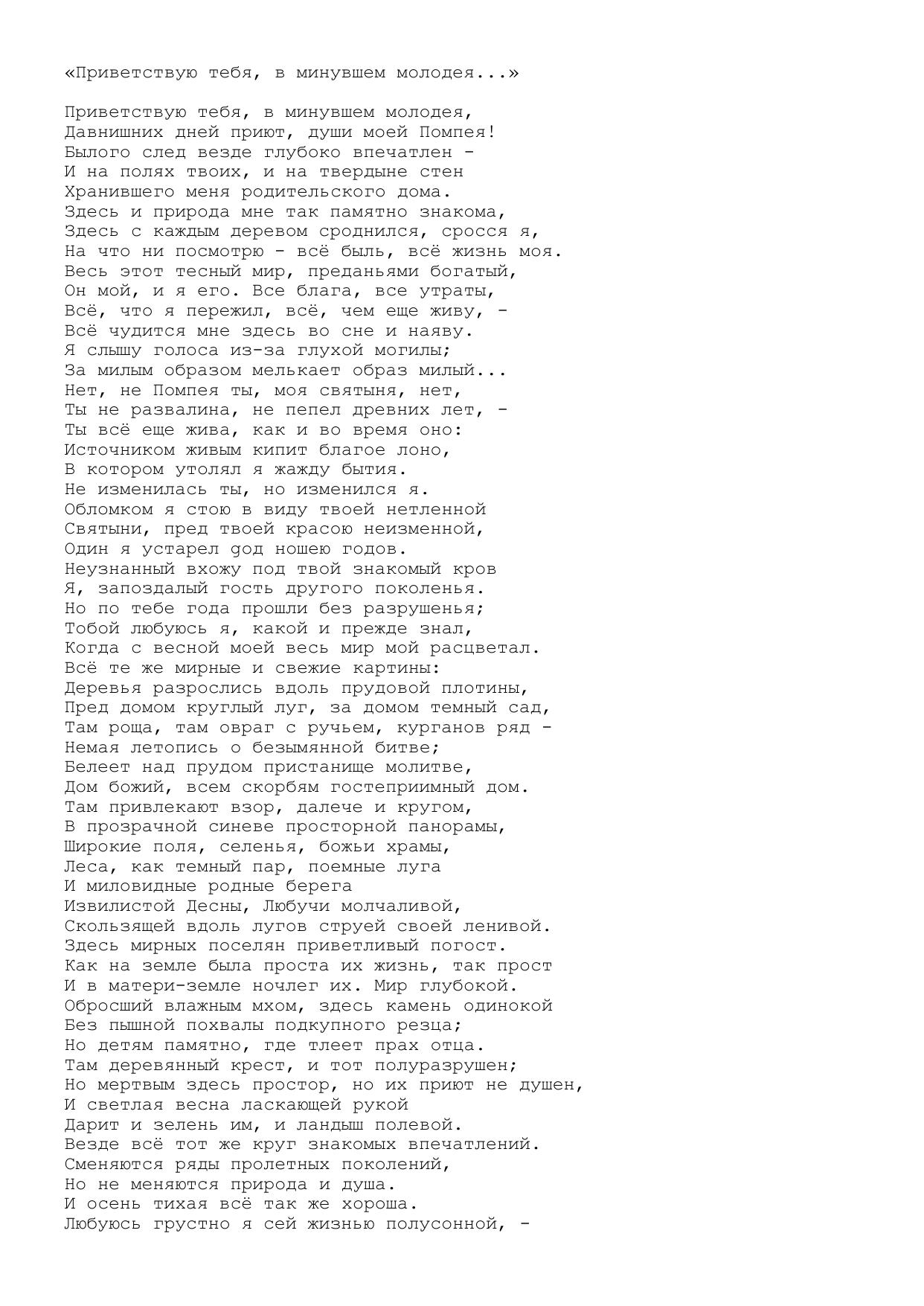 Приветствую тебя, в минувшем молодея...