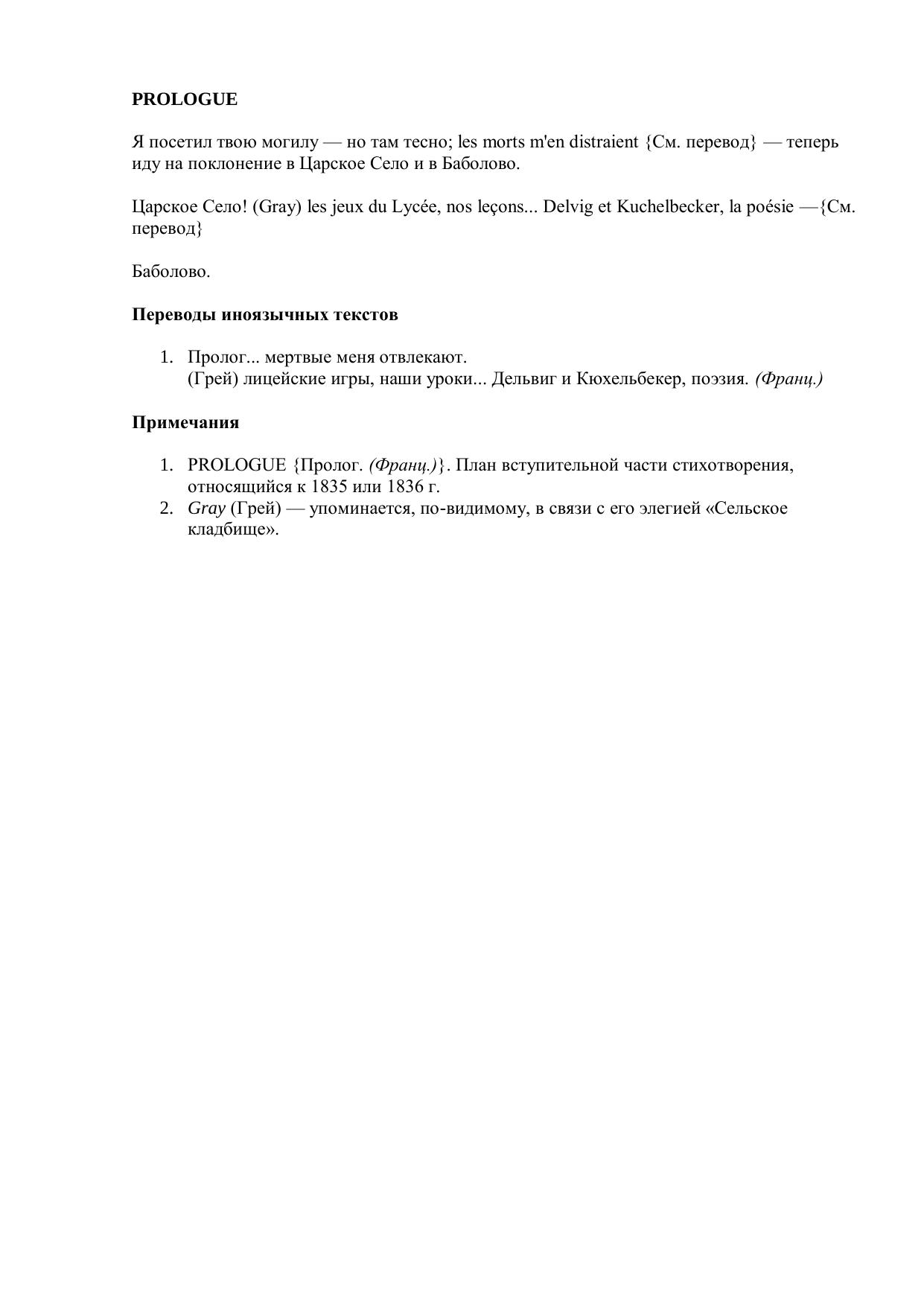Prologue ("Я посетил твою могилу...")