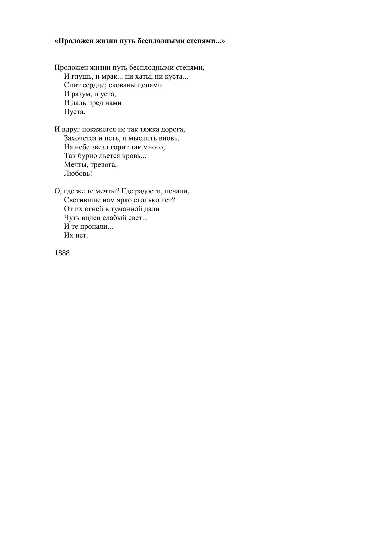 Проложен жизни путь бесплодными степями...