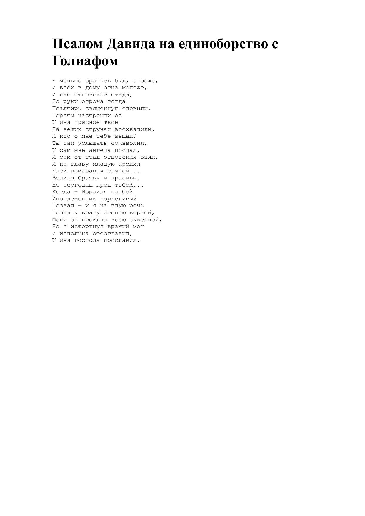 Псалом Давида на единоборство с Голиафом
