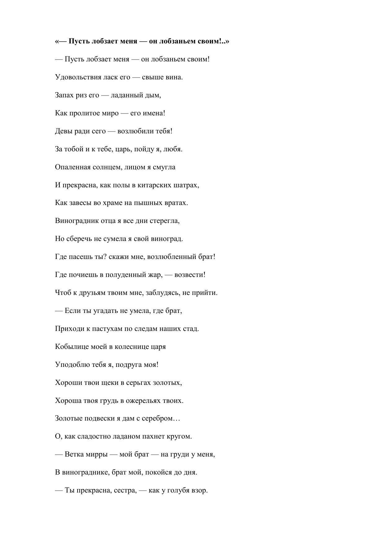 Пусть лобзает меня — он лобзаньем своим!..
