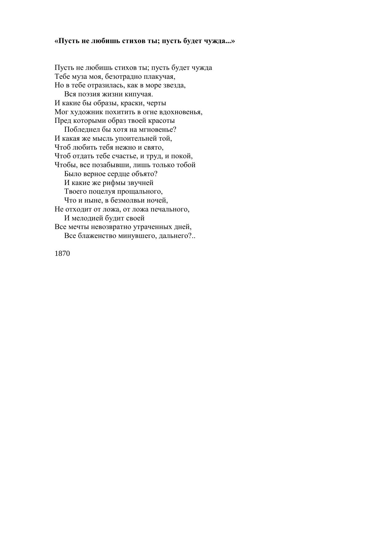 Пусть не любишь стихов ты пусть будет чужда...