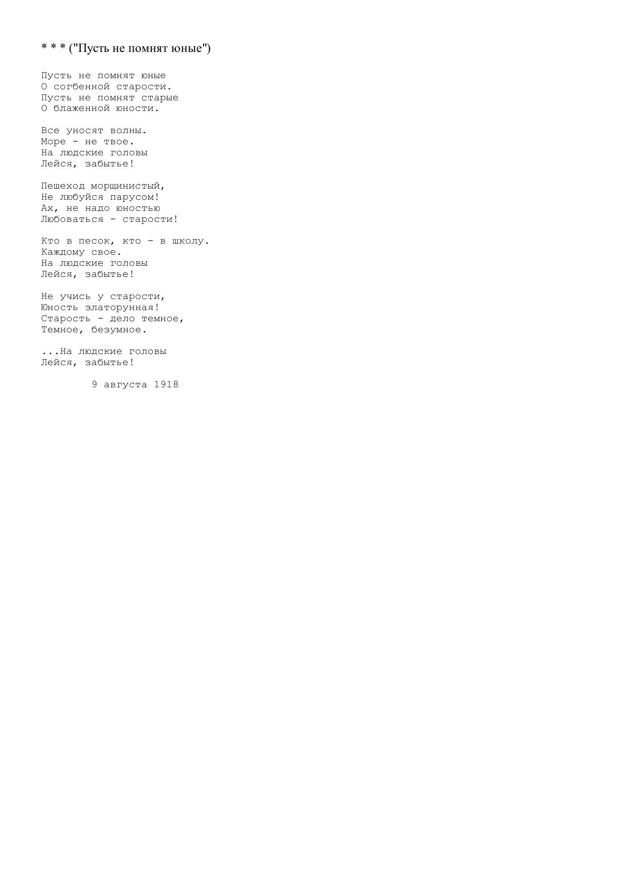 Пусть не помнят юные