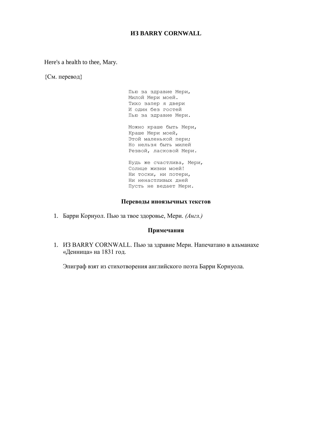 Пью за здравие Мери...")