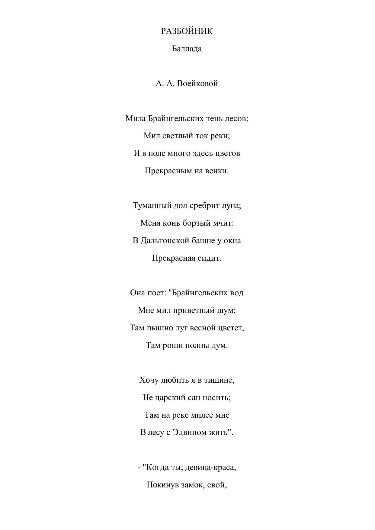 Разбойник. Баллада