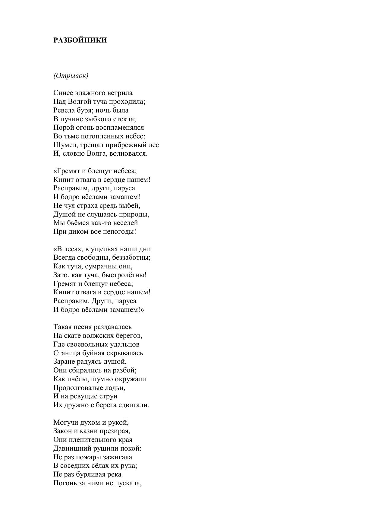 Разбойники. Отрывок