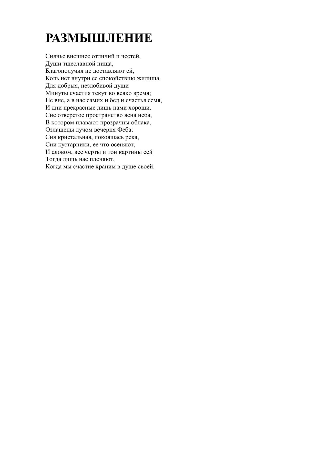 Размышление («Сиянье внешнее отличий и честей...»)