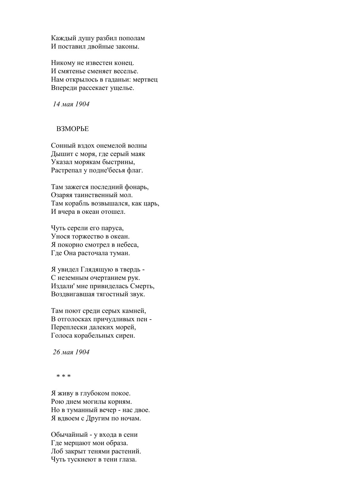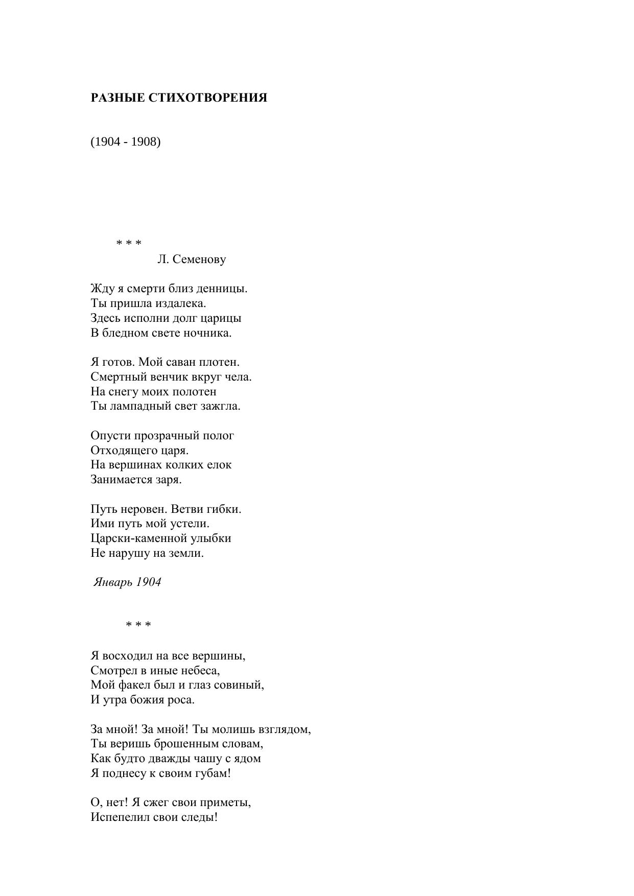 Разные стихотворения (1904-1908)
