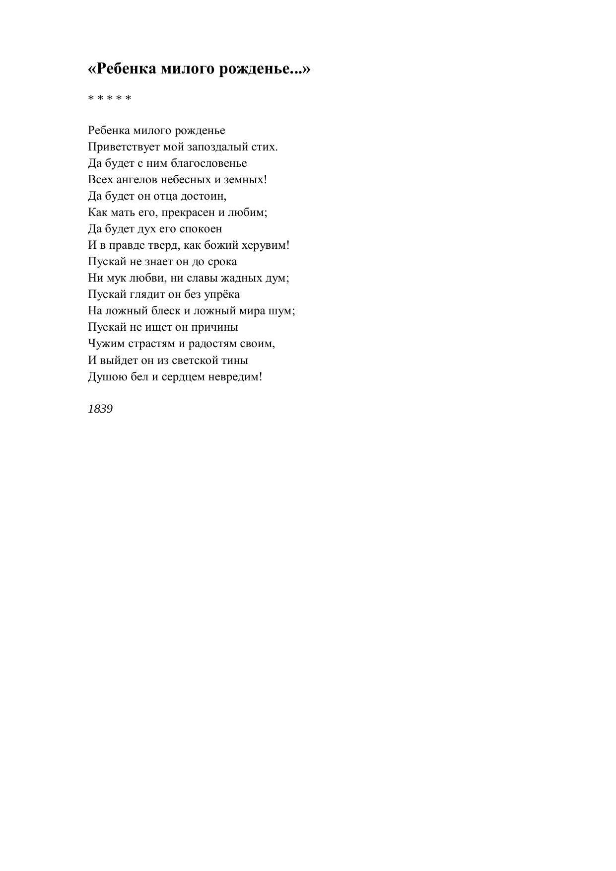Ребенка милого рожденье...
