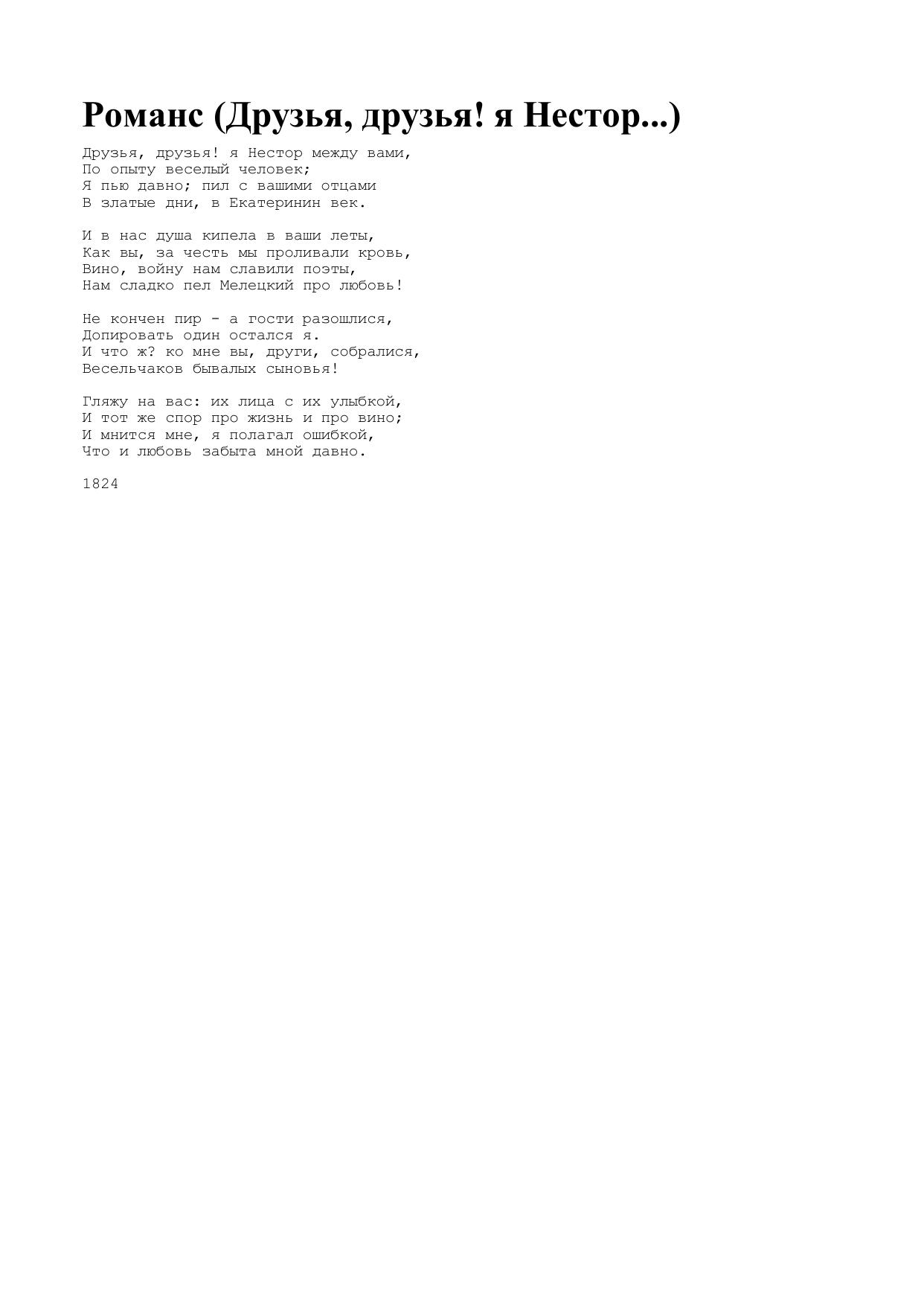 Романс (Друзья, друзья! я Нестор...)