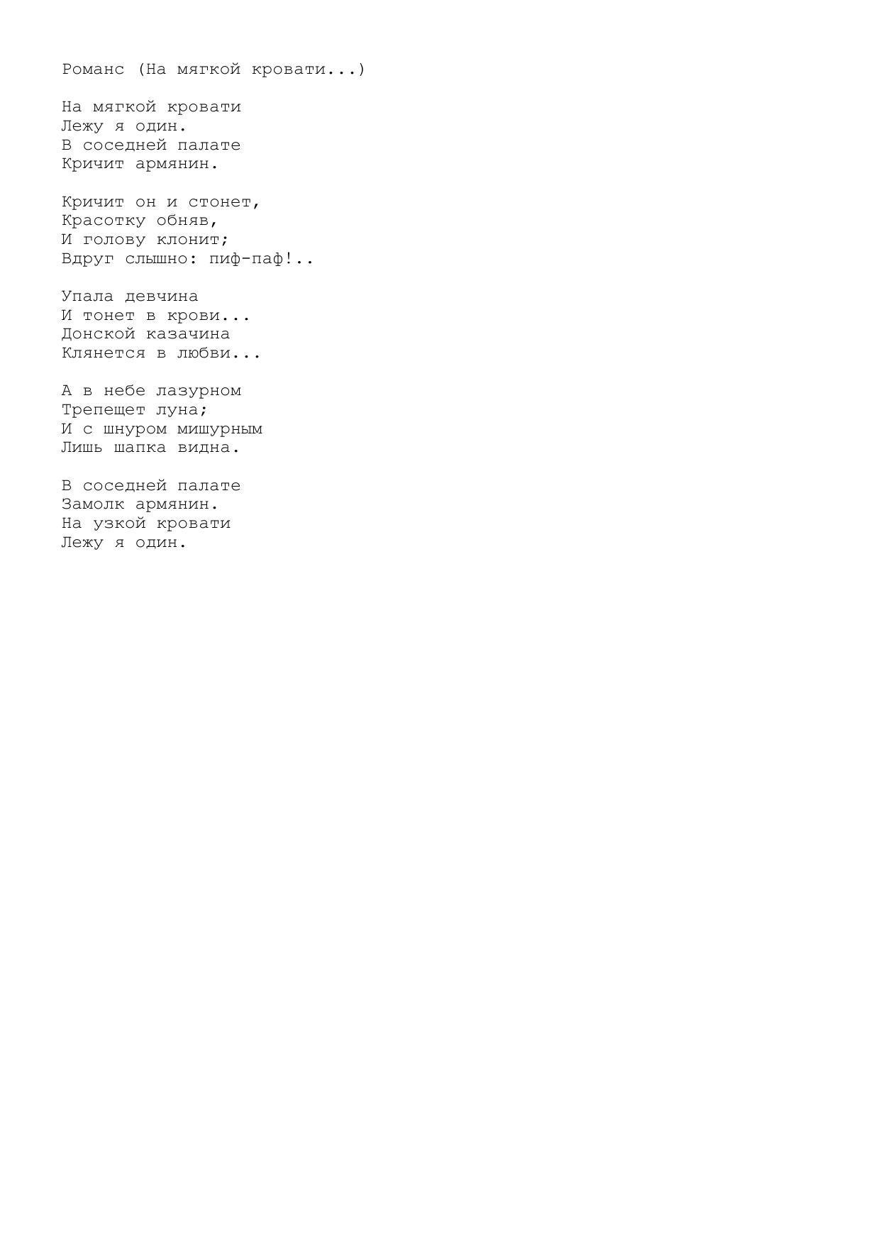 Романс (На мягкой кровати...)