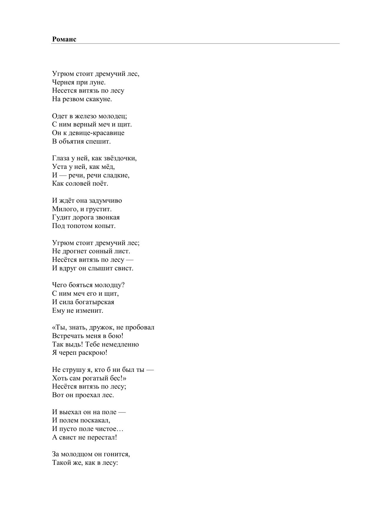Романс (Угрюм стоит дремучий лес…)