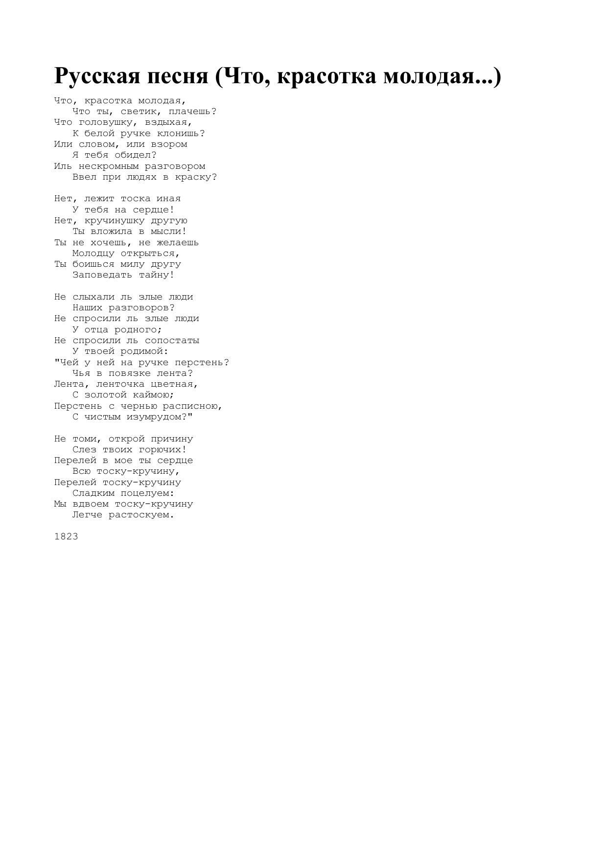 Русская песня (Что, красотка молодая...)