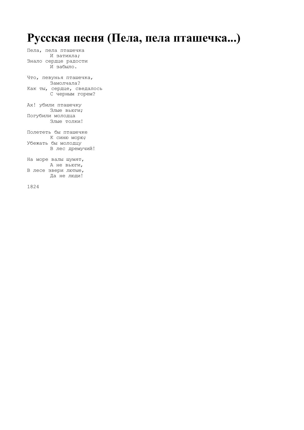 Русская песня (Пела, пела пташечка...)