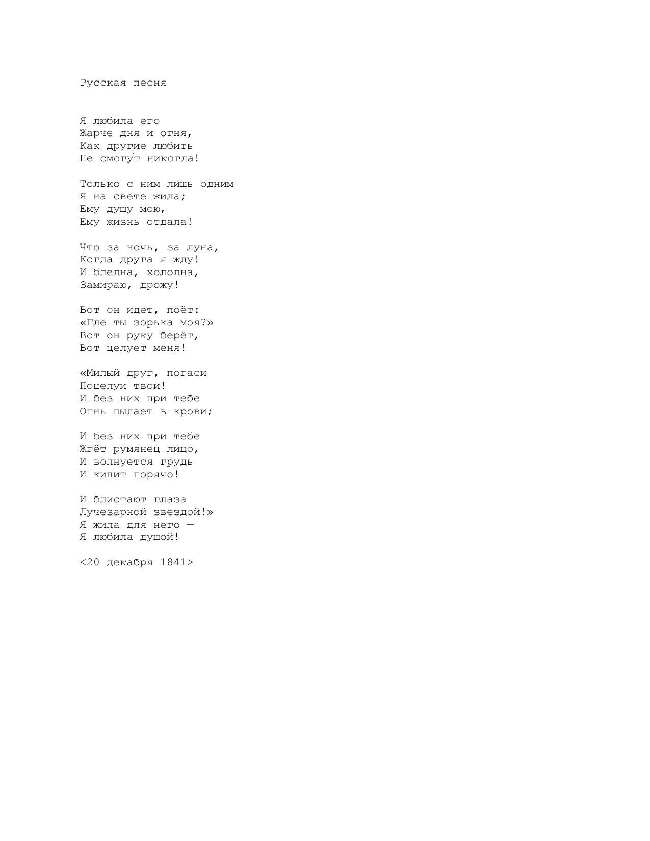 Русская песня (Я любила его…)