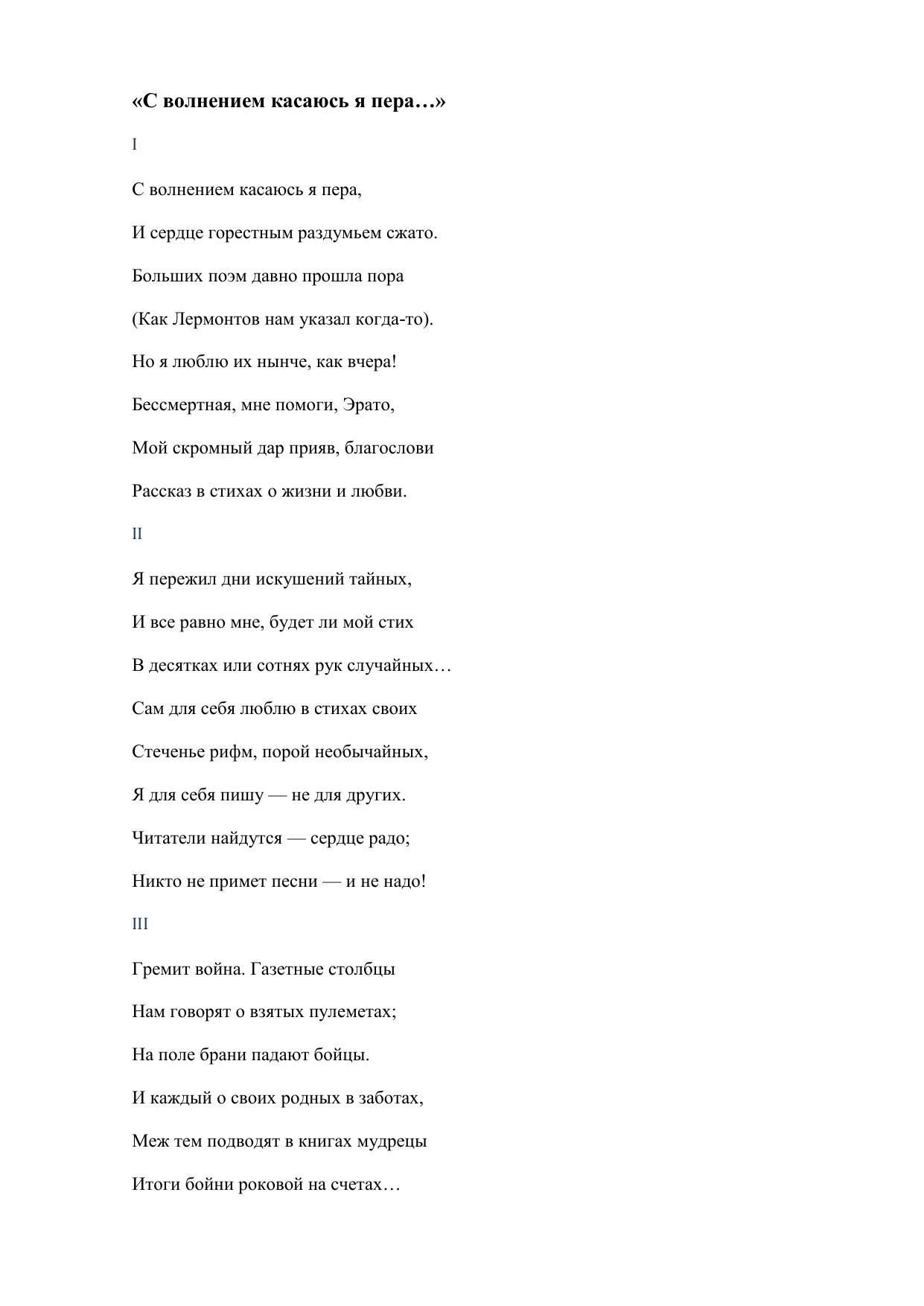 С волнением касаюсь я пера…