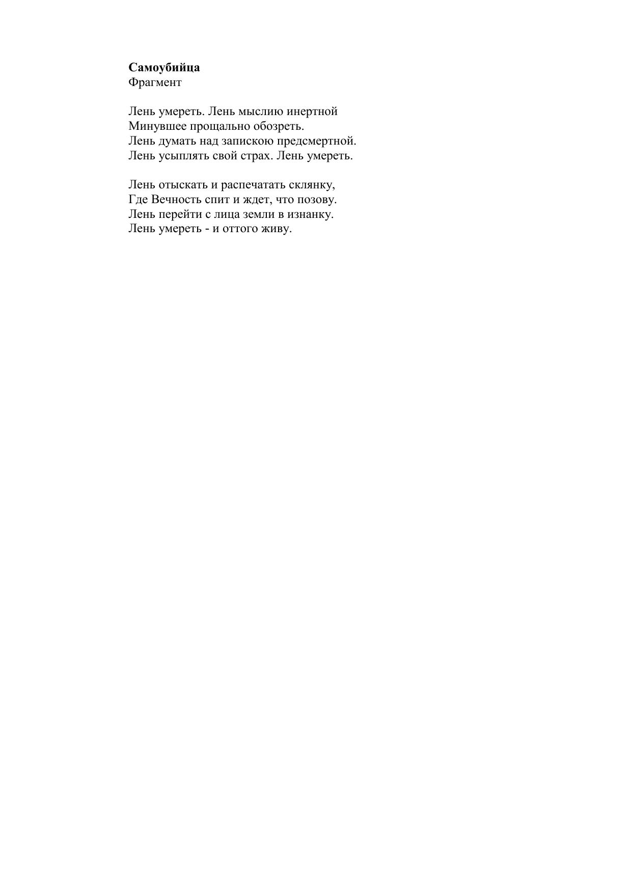 Самоубийца фрагментлень умереть. лень мыслию инертной...