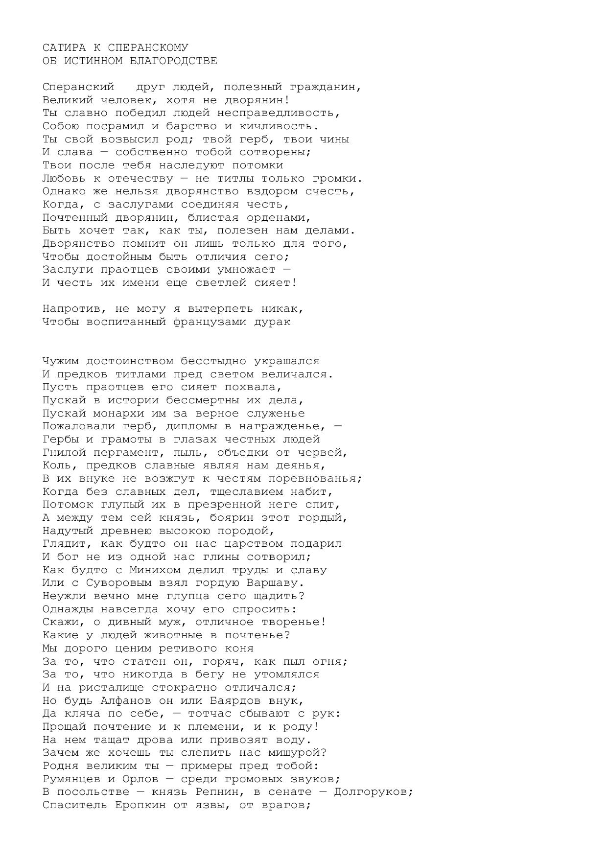 Сатира к С<перанскому> об истинном благородстве