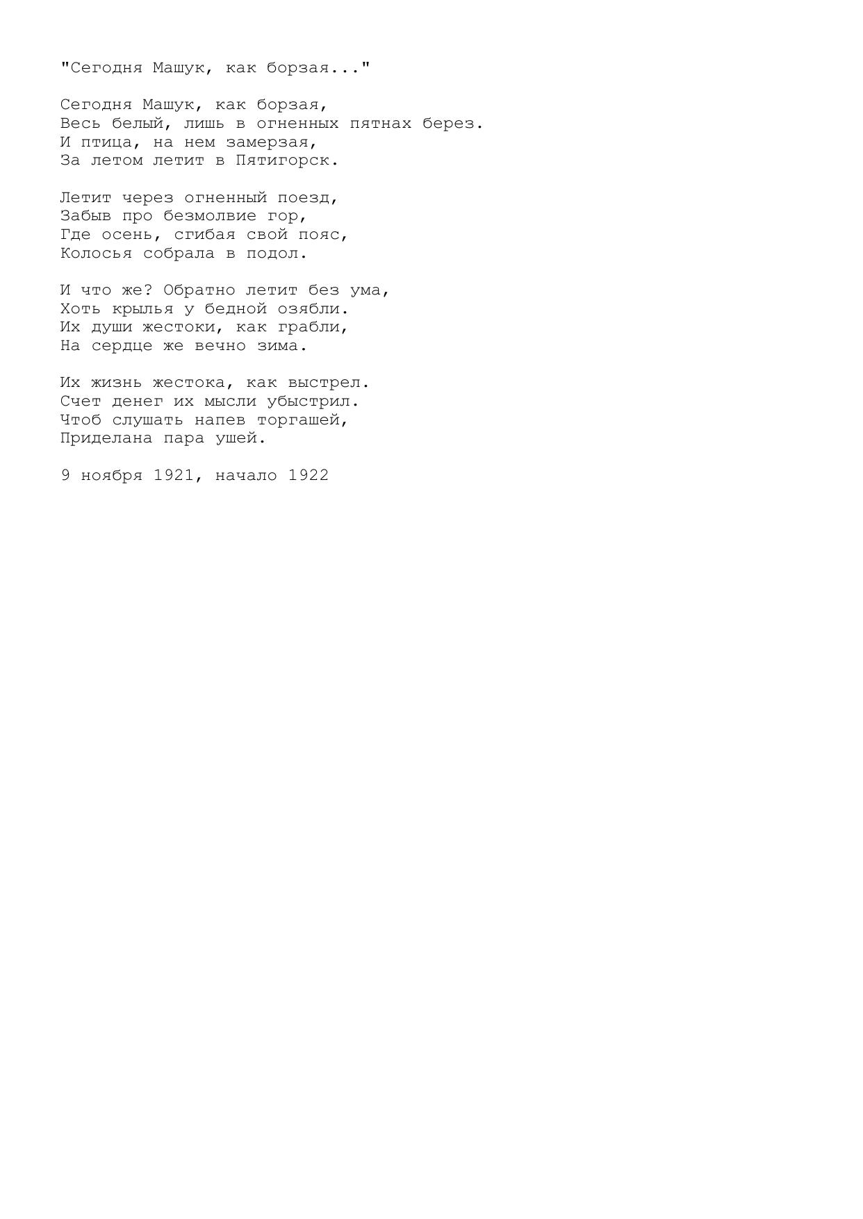 Сегодня Машук, как борзая...