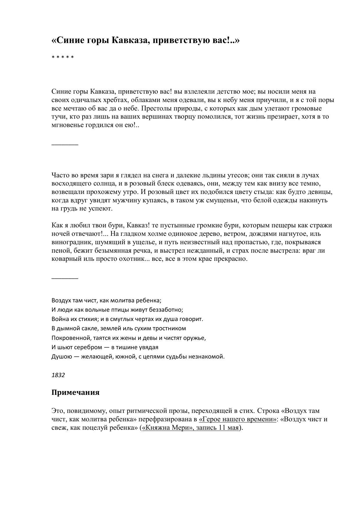Синие горы Кавказа, приветствую вас!..