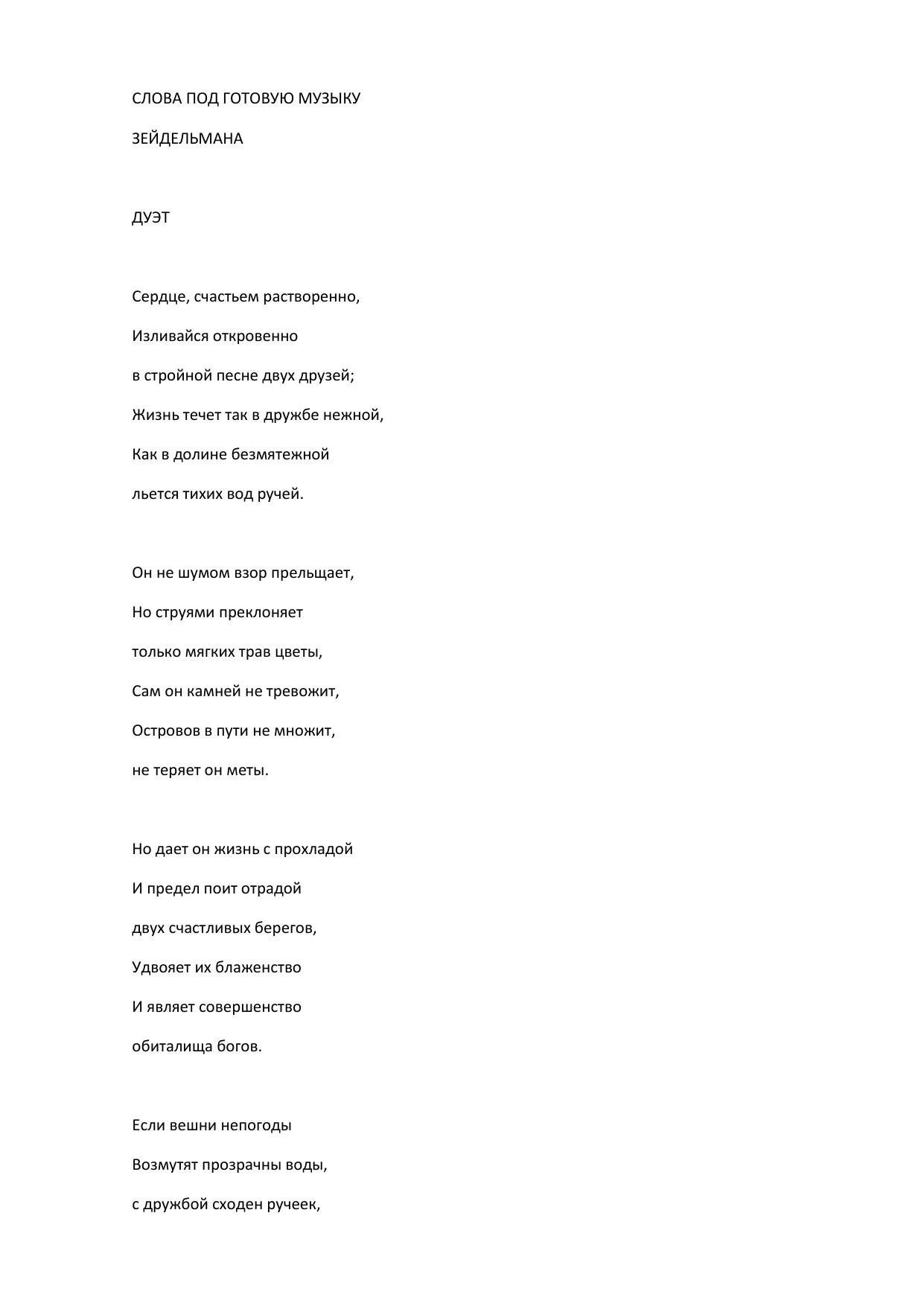 Слова под готовую музыку Зейдельмана