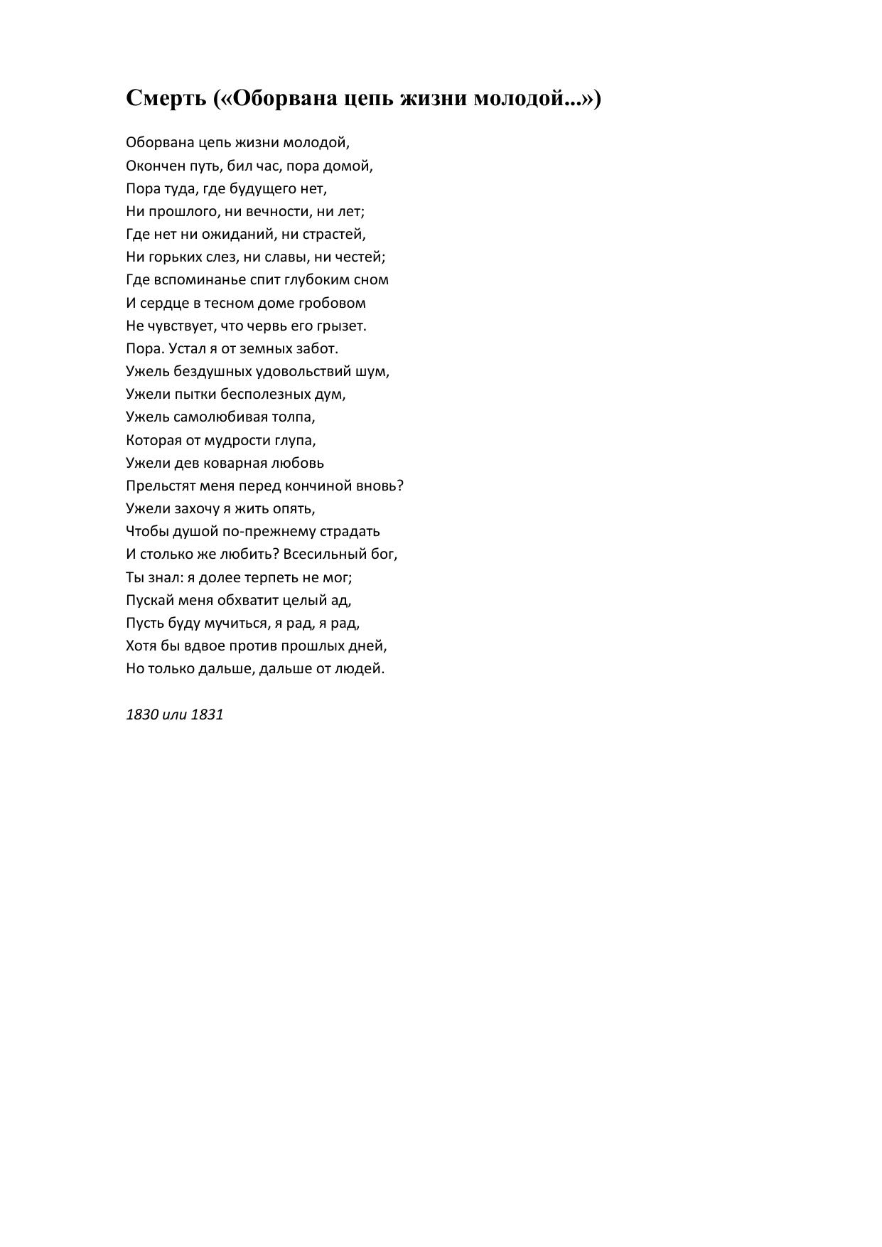 Смерть (Оборвана цепь жизни молодой...)