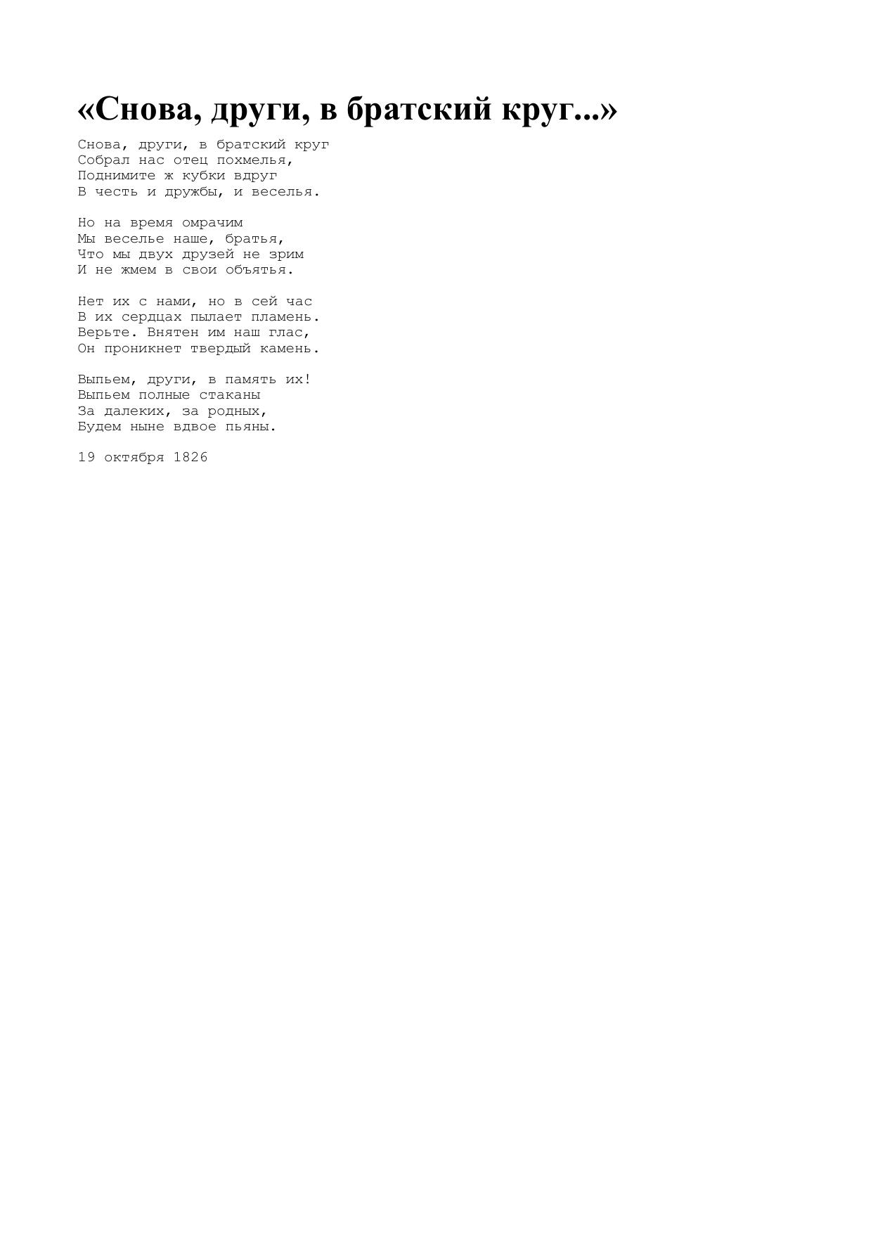 Снова, други, в братский круг...