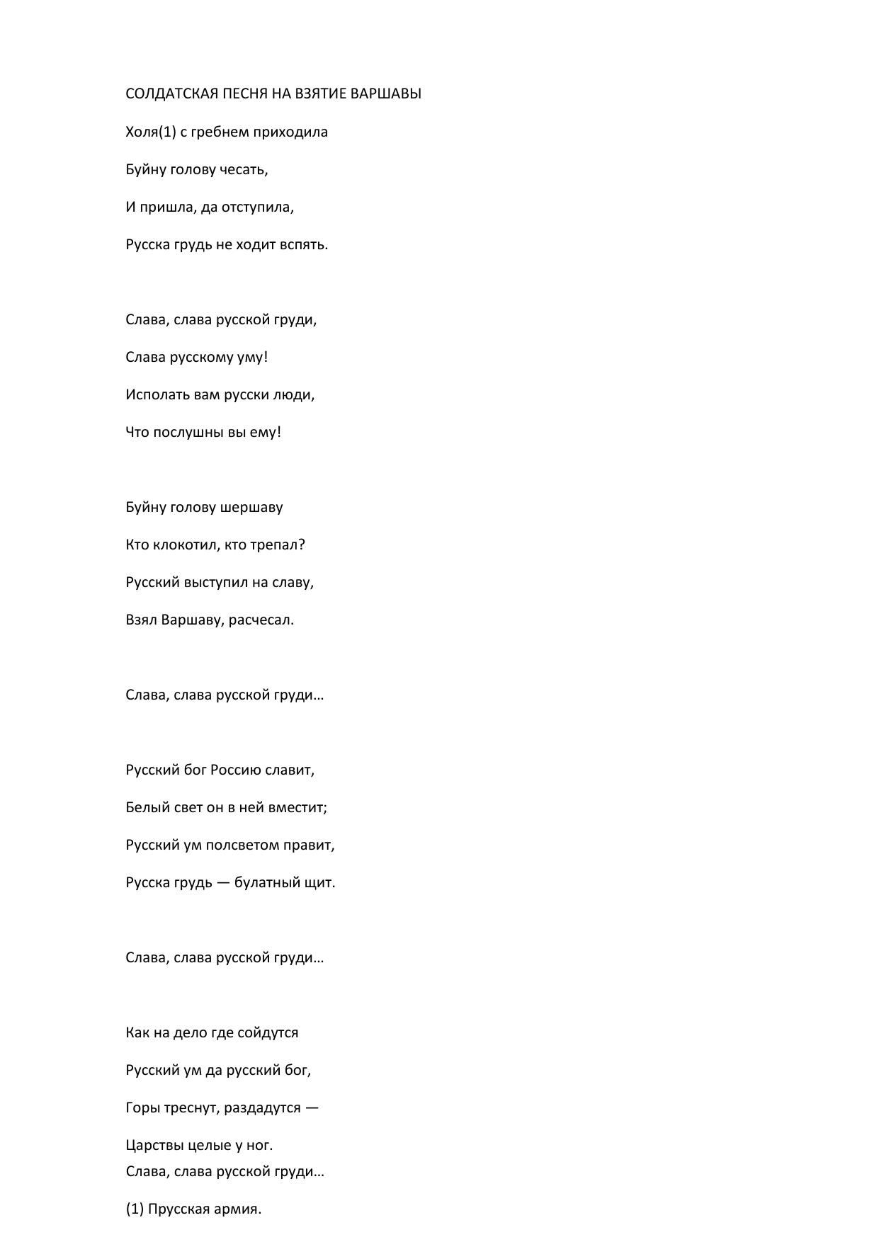 Солдатская песня на взятие Варшавы