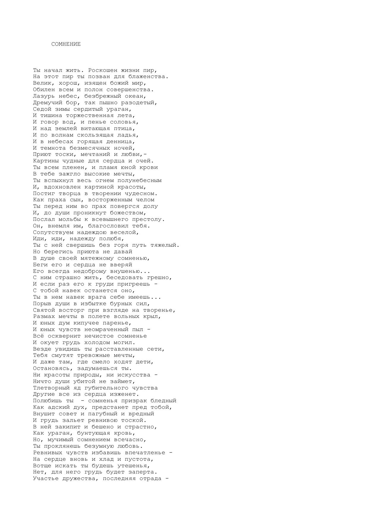 Сомнение (Ты начал жить. Роскошен жизни пир...)