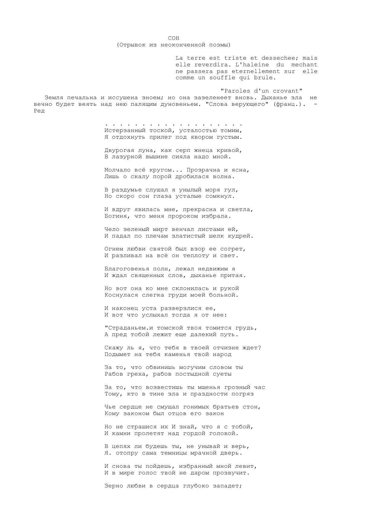 Сон (Отрывок из неоконченной поэмы)