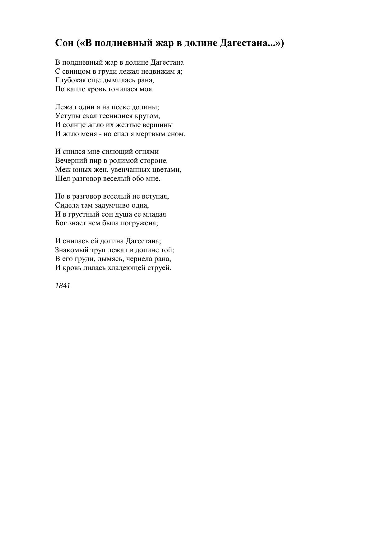 Сон (В полдневный жар в долине Дагестана...)