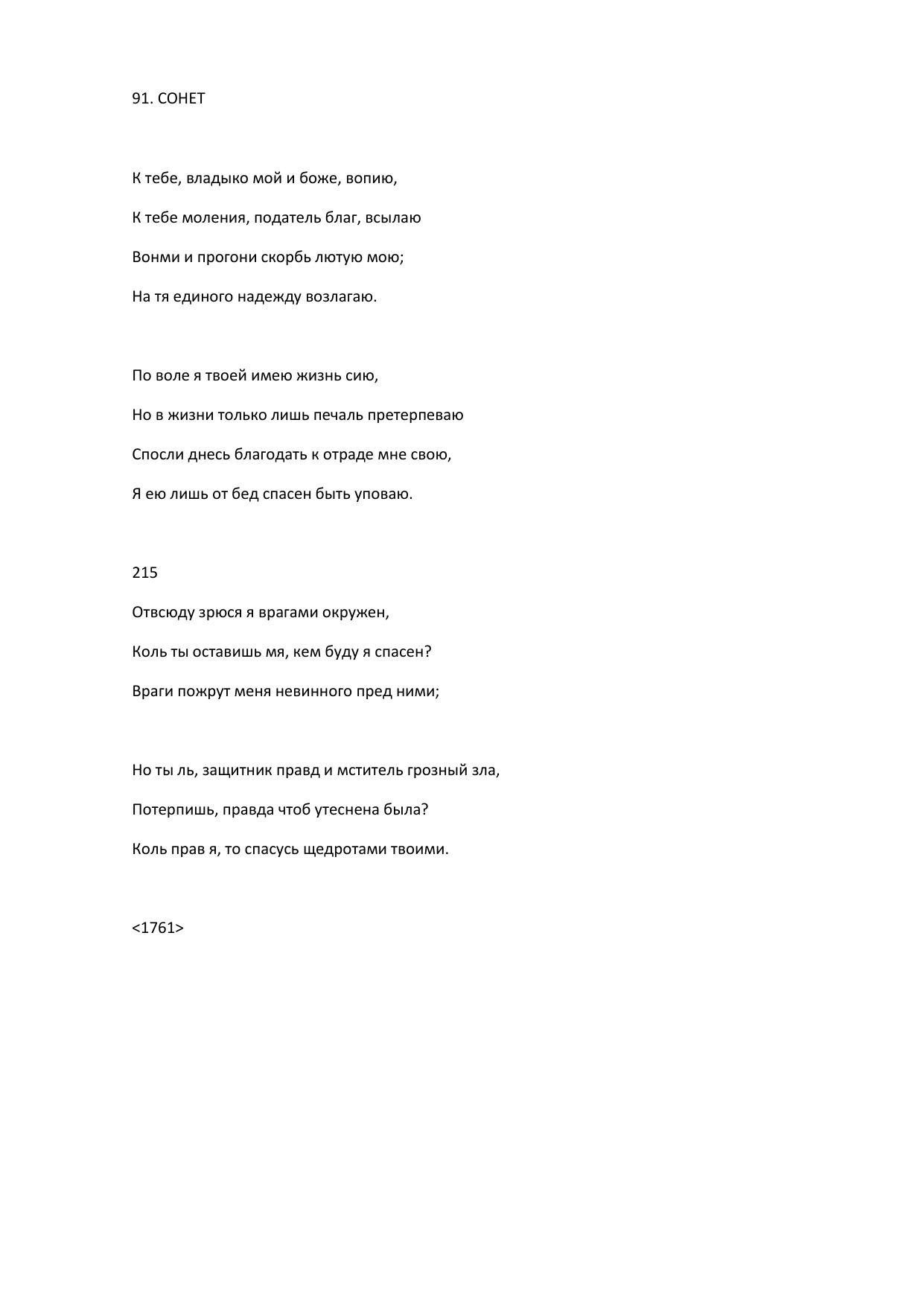 Сонет (К тебе, владыко мой и боже, вопию...)