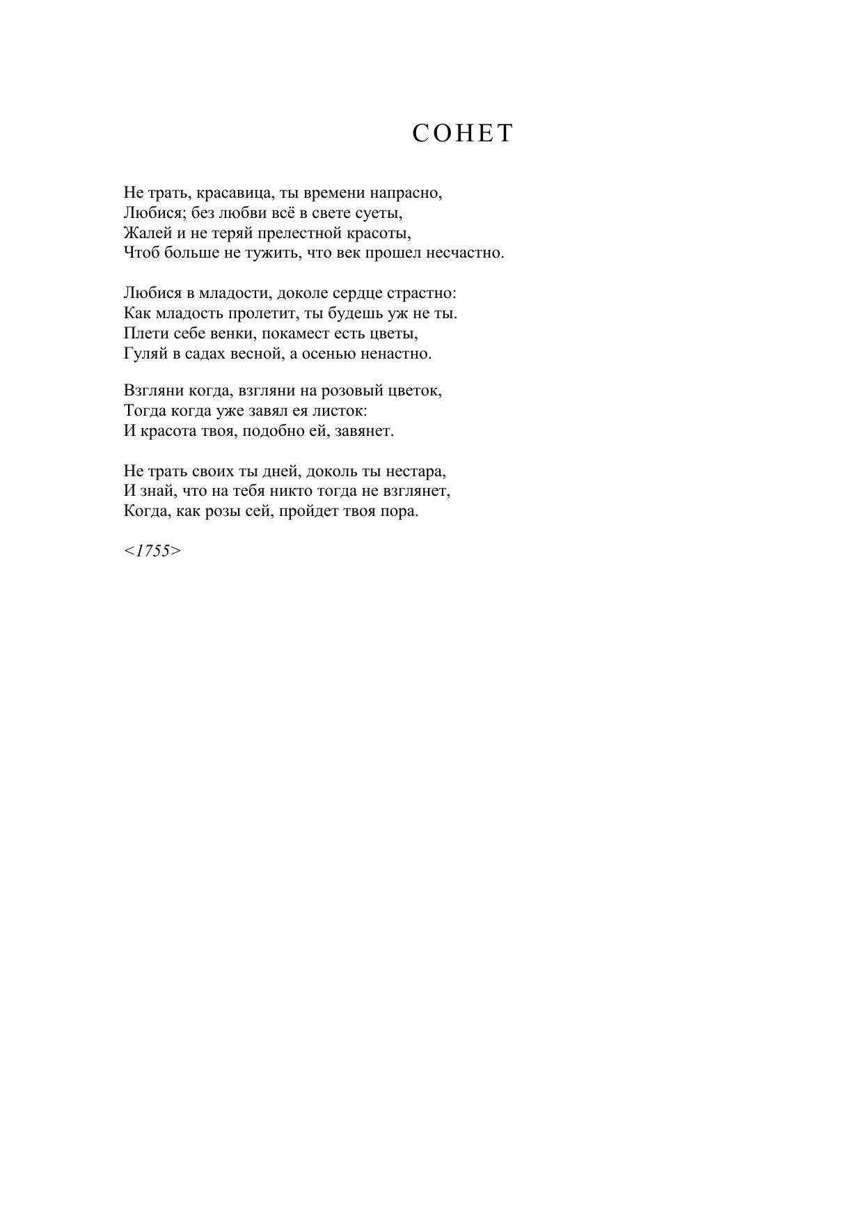 Сонет (Не трать, красавица, ты времени напрасно...)