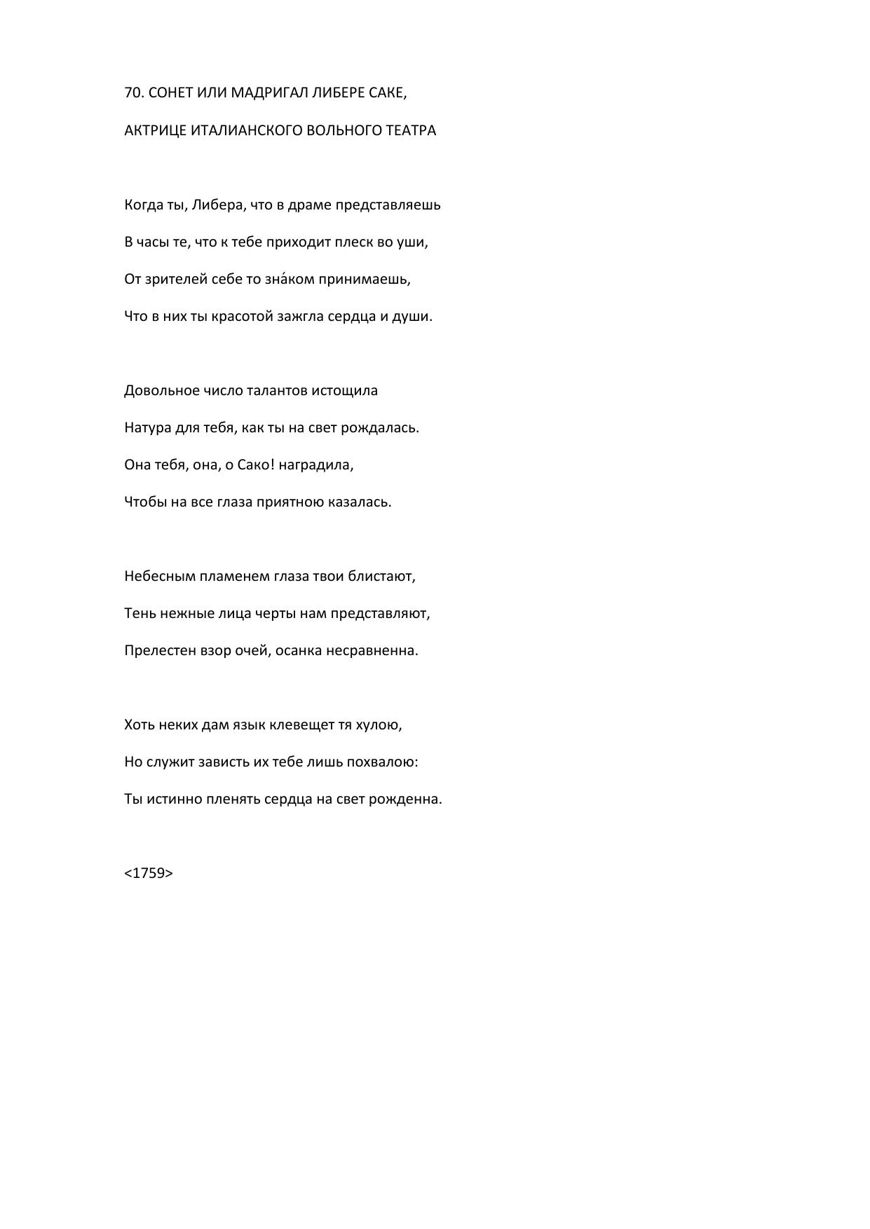 Сонет или мадригал Либере Саке, актрице италианского вольного театра