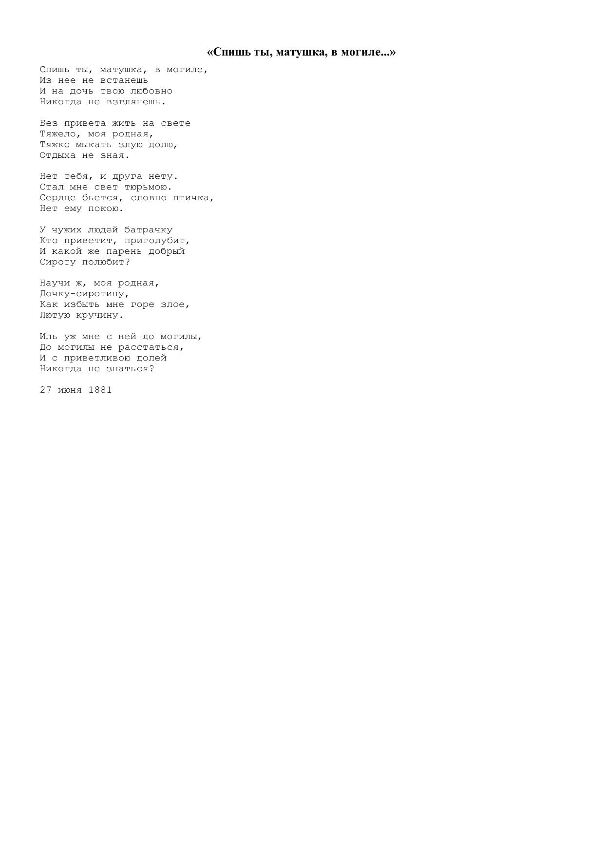 Спишь ты, матушка, в могиле…