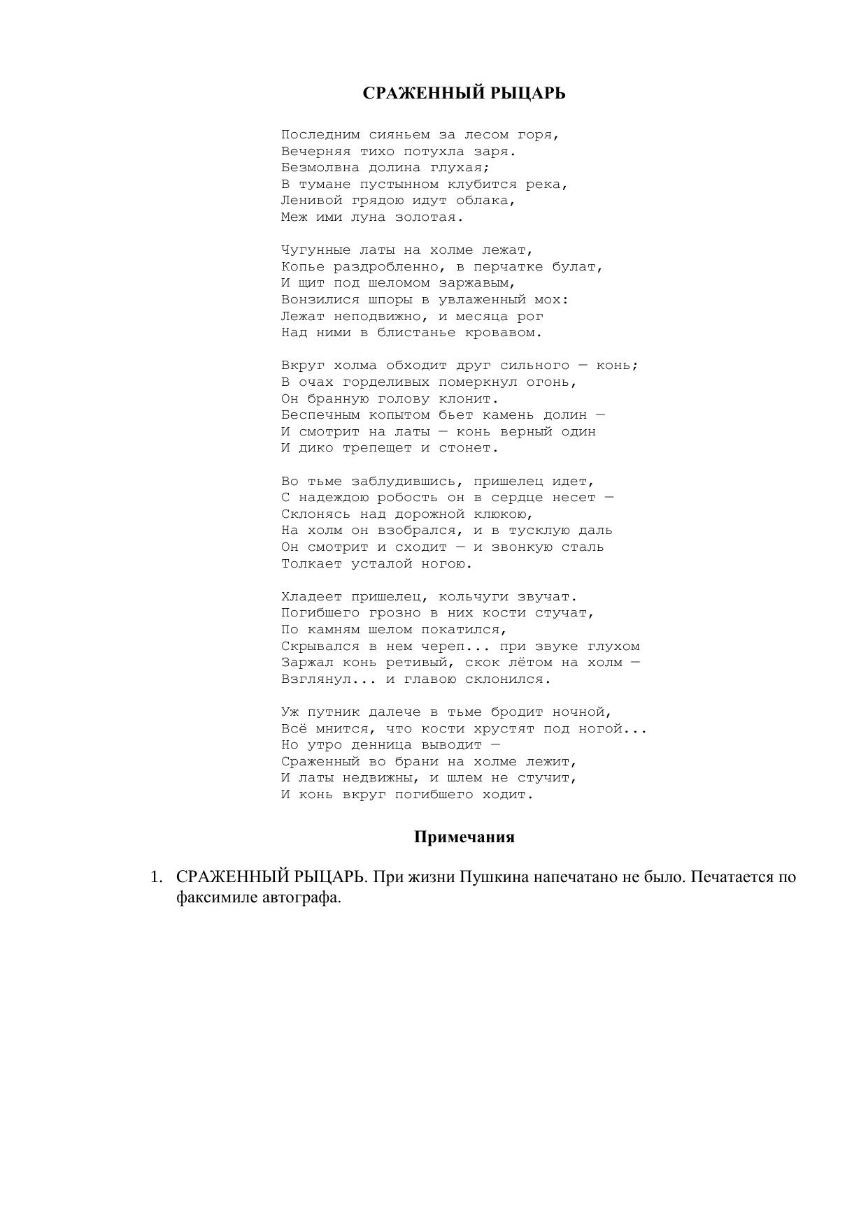Сраженный рыцарь ("Последним сияньем за лесом горя...")