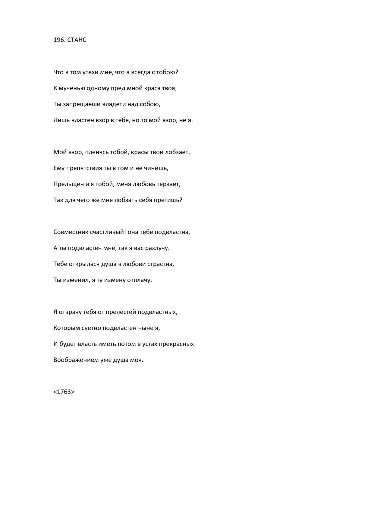 Станс (Что в том утехи мне, что я всегда с тобою...)