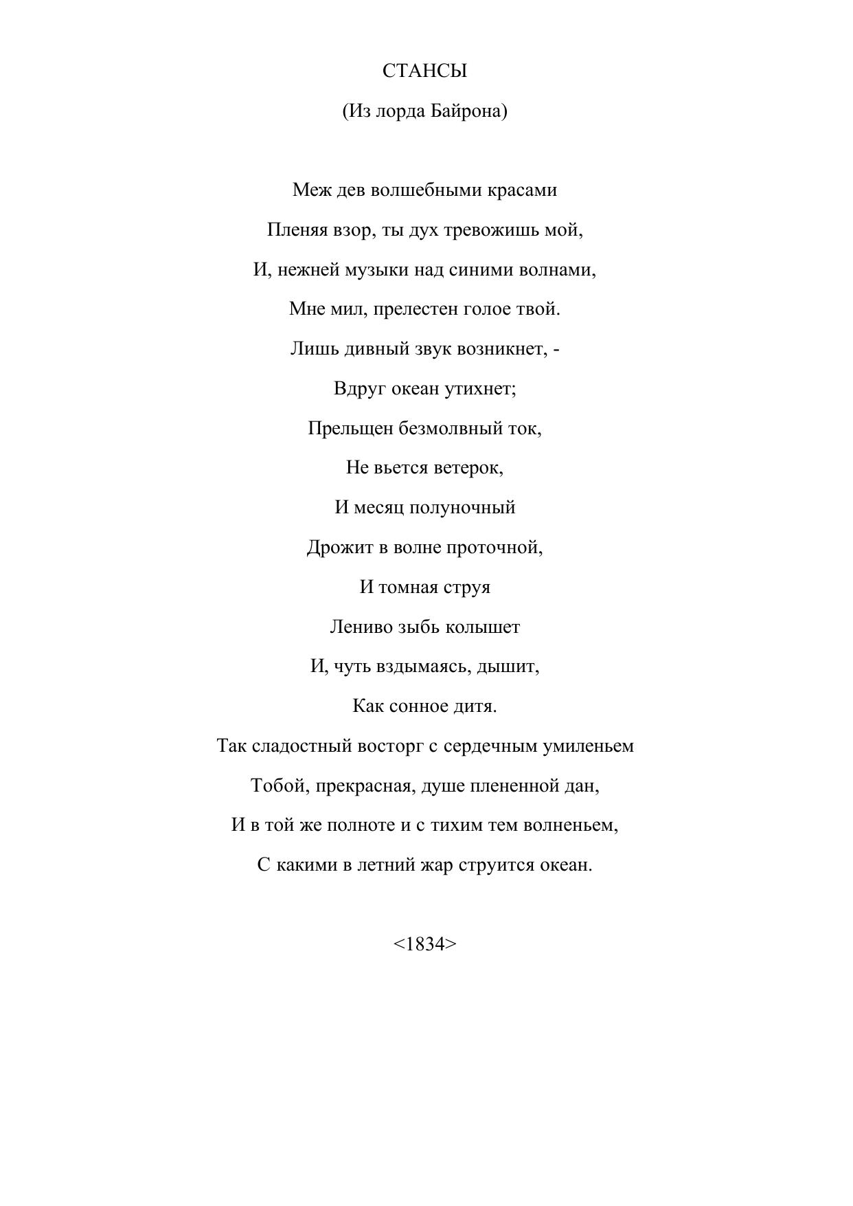 Стансы ("Меж дев волшебными красами..."). (Из Байрона)