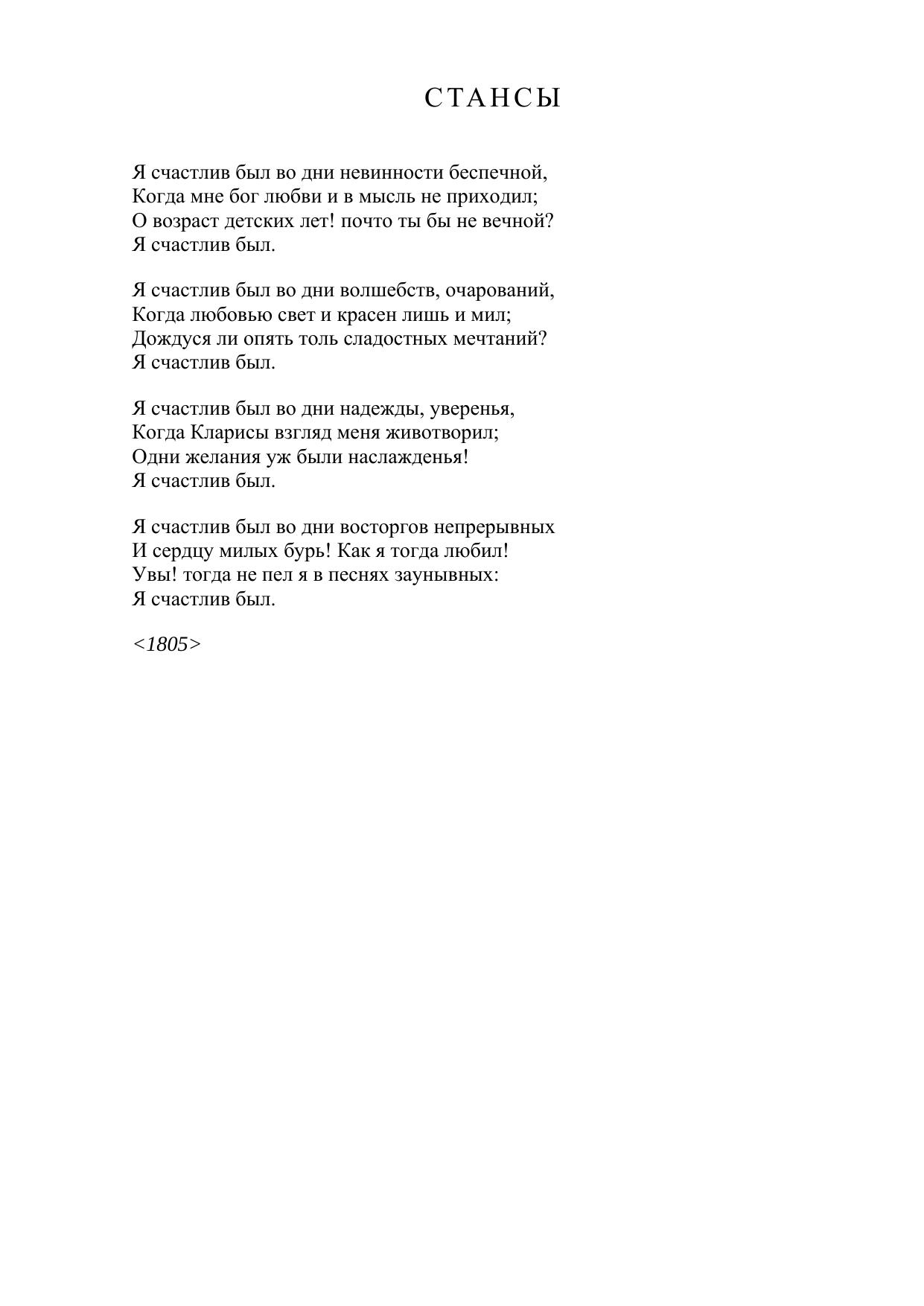 Стансы («Я счастлив был во дни невинности беспечной...»)